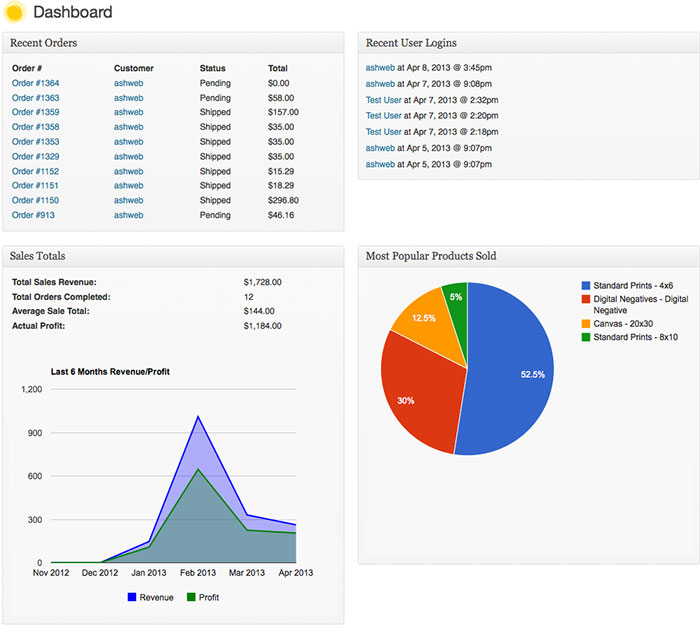 We also provide some great financial and overall statistics to help you get a better grasp of what people are doing and what they are buying. The additional information on the Dashboard provides: